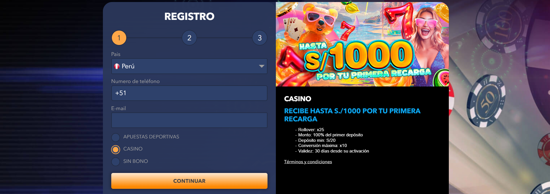Al crear cuenta tendrás acceso a casino, en vivo y deportes en una sola plataforma.